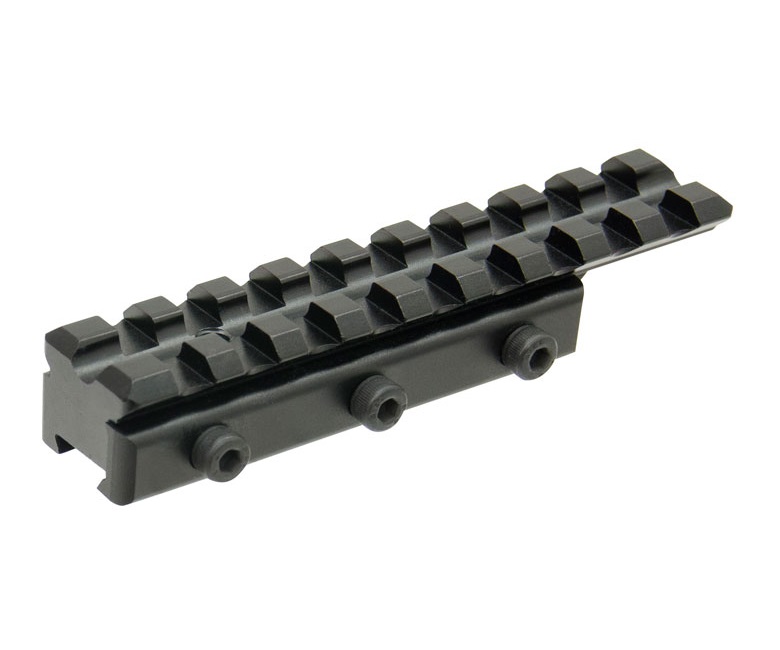 - Верхняя база — планка Вивер длиной 100 мм с 9 слотами обеспечивает достаточно места для удобного и эффективного монтажа оптики.