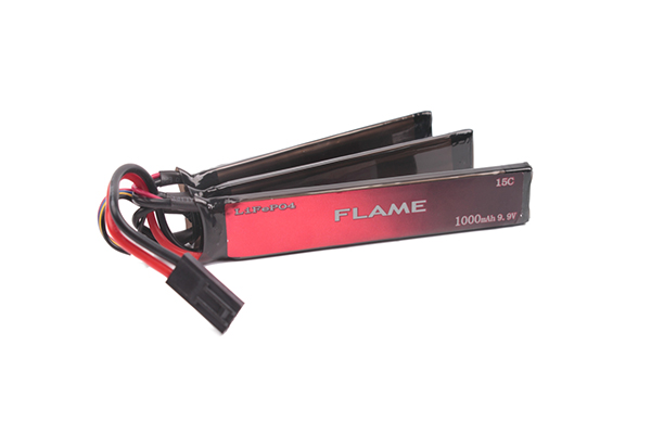 Главная Страйкбол (AirSoft) АКБ и зарядные устройства Аккумуляторы Аккумулятор Flame LiFe 1000H15C 9.9V трехлепестковый