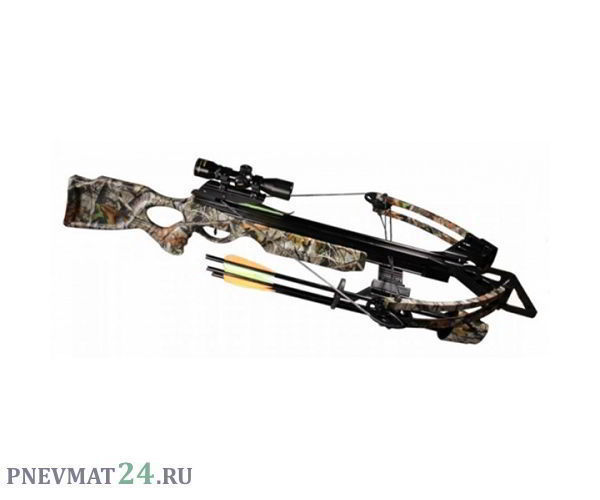 Комплектация (?): арбалет, оптический прицел 4×32, кивер на 4 стрелы, 4 алюминиевые стрелы