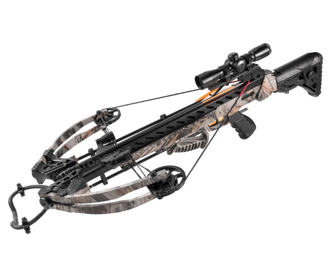 Безупречное качество исполнения каждой детали и великолепная сборка – безусловные достоинства этого арбалета. Использование высококачественных материалов (алюминий для ствола, пластик ABS и композит – для плечей и приклада) делает изделие прочным и долговечным. Еще одно преимущество арбалета MK-XB56GODC – в оригинальном камуфляжном исполнении, делающим оружие незаметным в условиях охоты. Вес – 3,3 кг, длина всего 89,6 см. В комплектацию включены 4 стрелы из алюминия и воск.