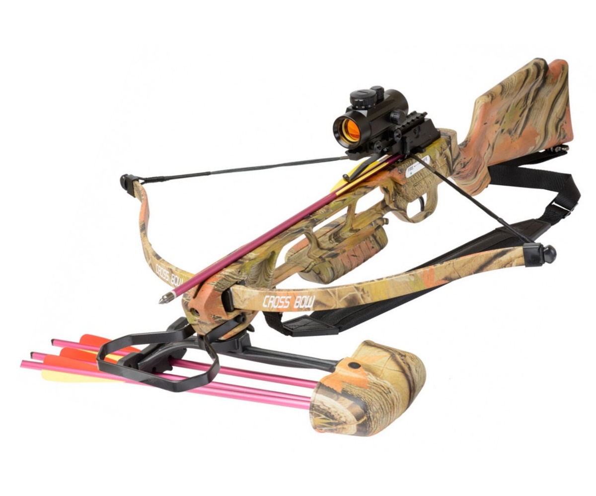 | Комплектация (?): | арбалет, воск, кивер, диоптрийный прицел, коллиматорный прицел, ремень, натяжитель, стрингер, 4 алюминиевые стрелы 16″ |