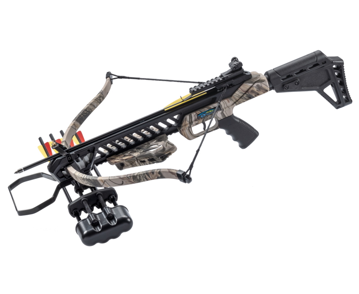 Приклад телескопический, регулируется по длине, позволяя настроить арбалет индивидуально. Цевье арбалета имеет защиту от удара тетивы, что необходимо начинающим пользователям.