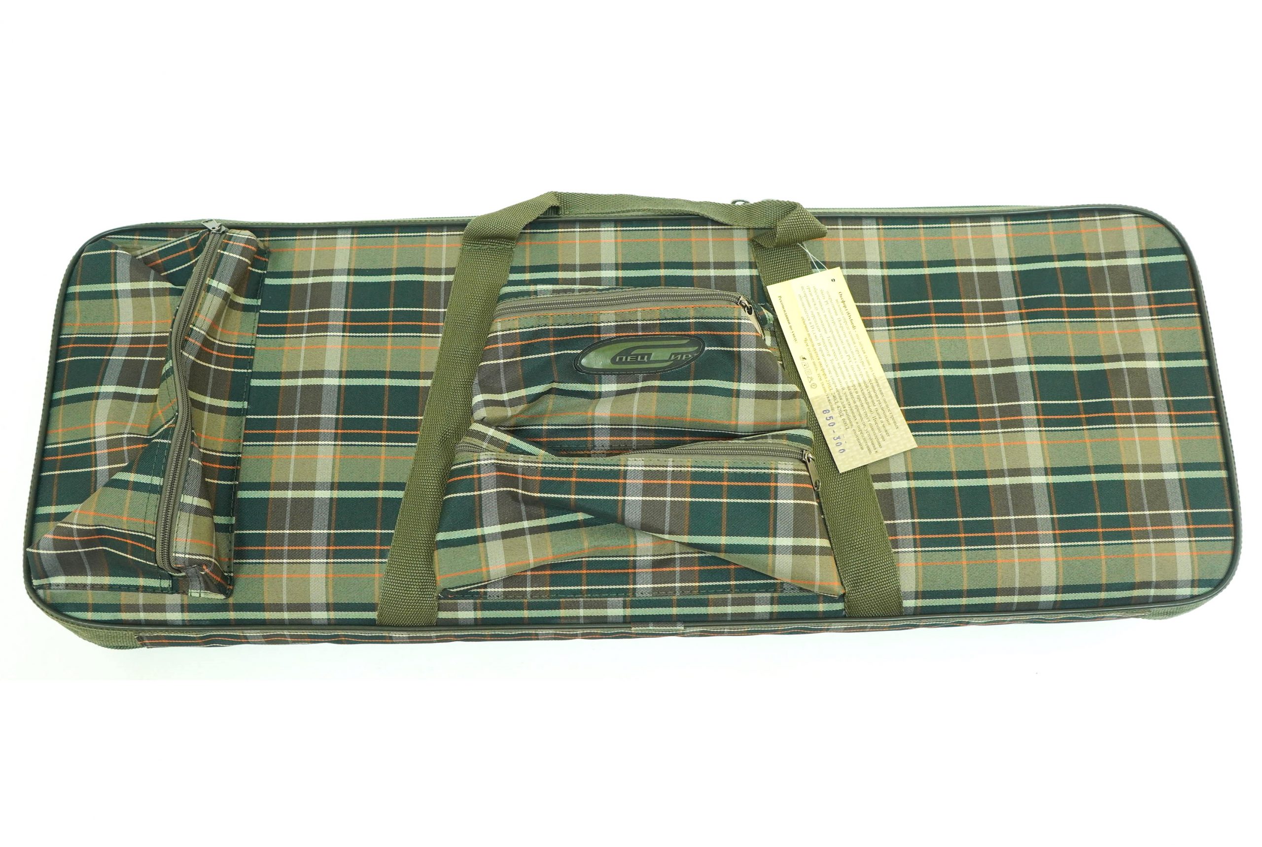 Данный чехол из клетчатой водонепроницаемой ткани «шотландка» предназначен для хранения и переноски винтовок и ружей размером до 850×300 мм. На передней стороне 3 объемных кармана на молнии. В большом кармане на тыльной стороне находятся лямки для переноса чехла за спиной.