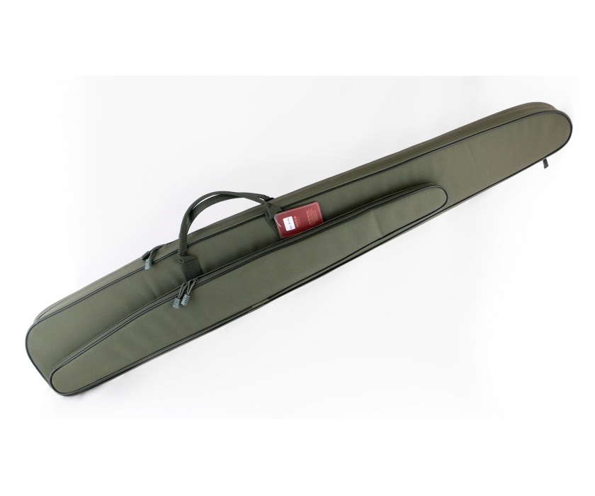 Чехол из капрона с поролоном и тканевой подкладкой для полуавтоматического ружья с карманом под дополнительный ствол. Длина внешняя 137 см, внутренняя 134 см.