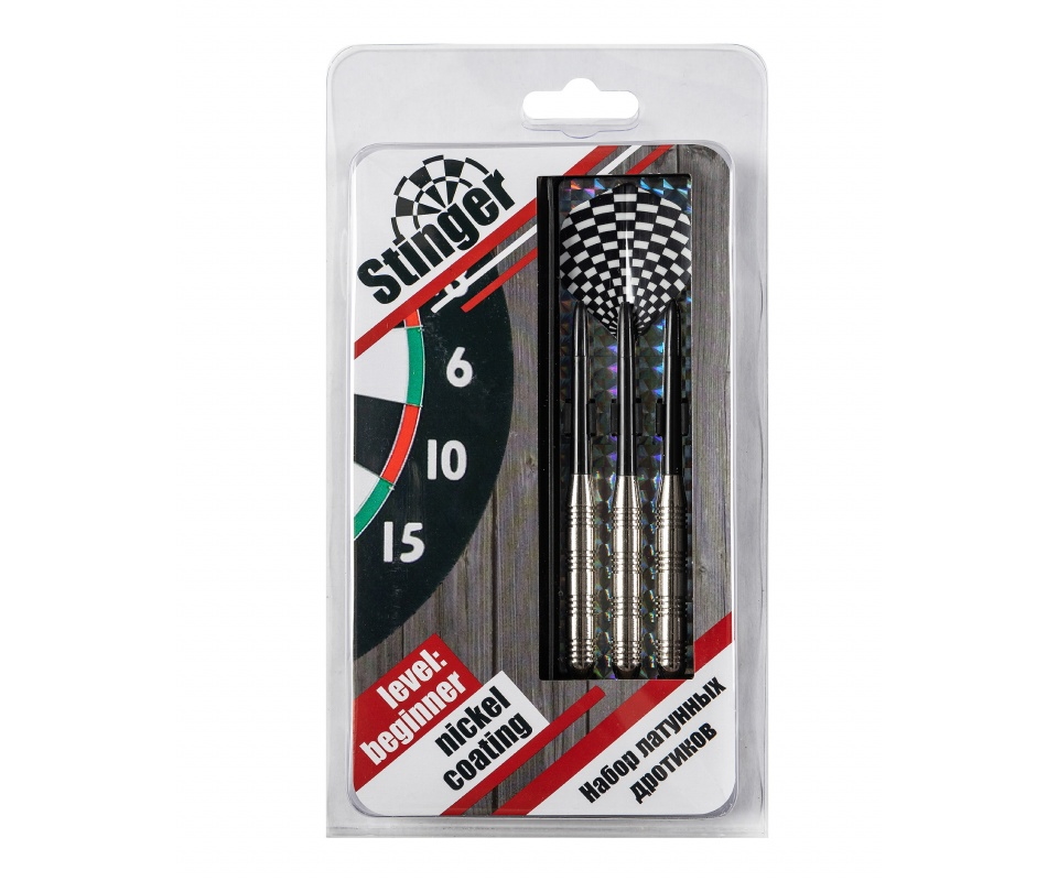 Дротики для дартса Stinger, 3 шт., уровень — любительский, игла — сталь, хвостовик — нейлон, оперение — PVC, вес 19 грамм, баррель — латунь покрытый никелем.