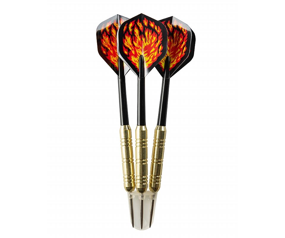 Дротики для дартса Stinger, 3 штуки , уровень — начальный, баррель — сталь с покрытием латунь, игла — сталь, хвостовик — нейлон, оперение — нейлон. Вес — 18 грамм.