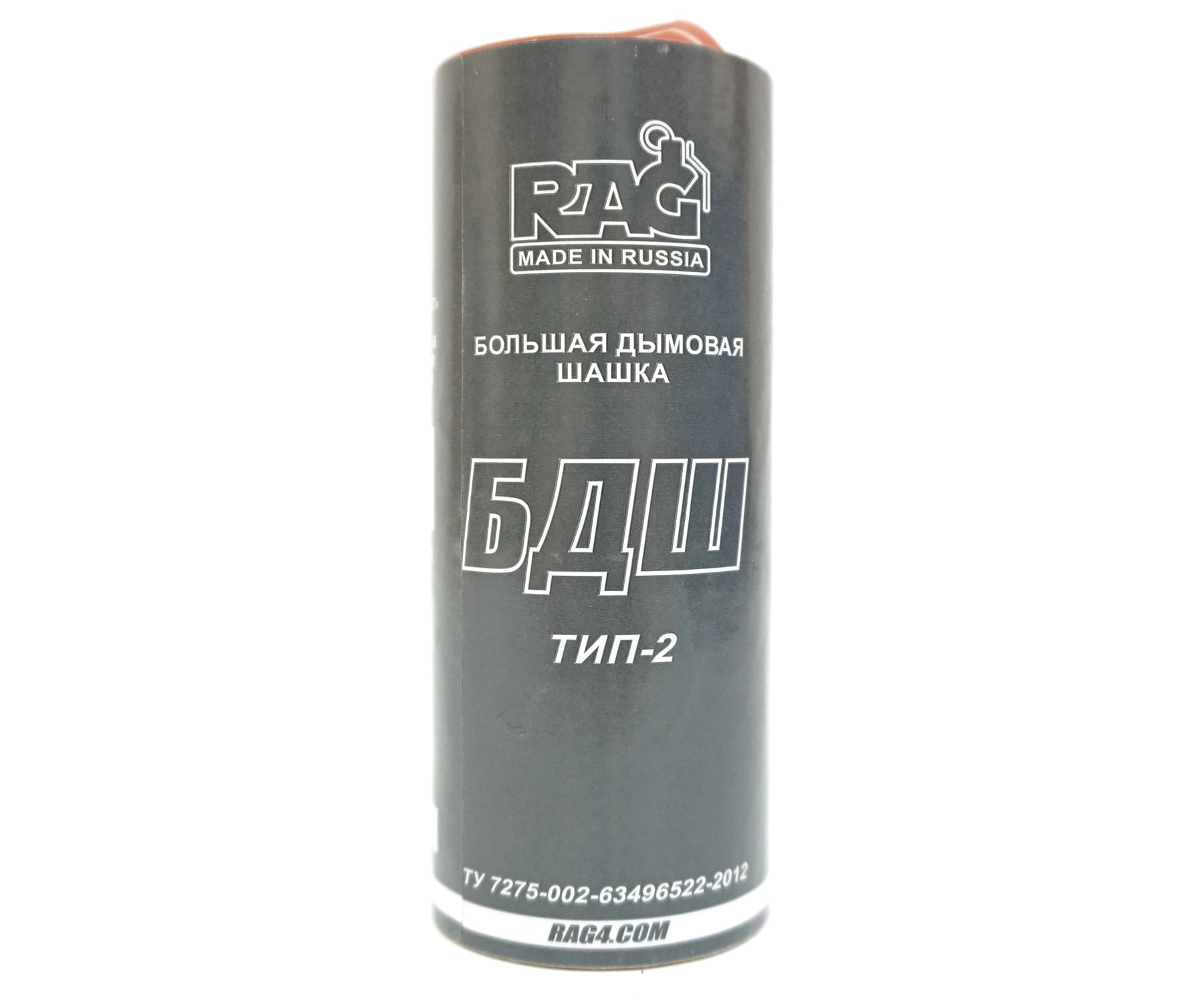 Шашка дымовая учебная RAG БДШ тип-2, является наибольшей по объёму и времени дымовыделения из существующих на рынке пиротехнических изделий гражданского назначения, используемых при проведении военно-спортивных игр, учебной практики и прочее. 2-я версия сохранила форму и узел воспламенения от первоначальной модели, при этом внутренняя начинка изменилась полностью. Используется современный дымовой состав, на основе хлорорганических соединений, в виде двух монолитных шашек, размещаемых внутри корпуса; удобный в применении и надёжный фрикционный воспламенитель остался нетронутым, так как за несколько лет производства и эксплуатации доказал свою надёжность.
