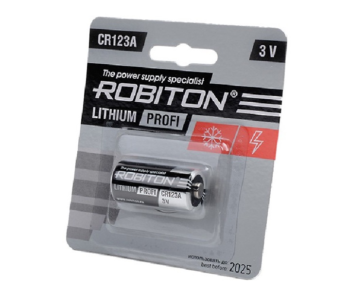 Неперезаряжаемый литий-диоксид марганцевый элемент питания типоразмера CR123A. Сохраняет стабильность работы при высоких токах разряда и низкой температуре.