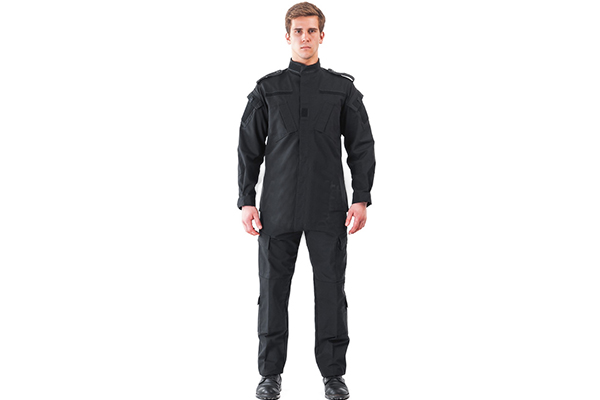 Форма черного цвета пошита в стиле рип-стоп. В комплект входят куртка и штаны. Ткать костюма – комбинация 35 % хлопка и 65 % полиэстера. Форма имеет 8 карманов для переноски мелкого снаряжения. В пояс брюк вшит утягивающий шнур. Есть широкие петли для применения тактического ремня. Внизу штанин имеется механизм утяжки.