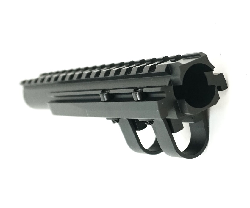 Газоотводная трубка C07 из черного металлического сплава используется для страйкбольных автоматов серии АК74 с RIS планкой (20 мм), расположенной на верхней части. Используется для крепления колиматорного прицела или другого подходящего снаряжения для страйкбольного оружия. Длина устройства – 178 мм.
