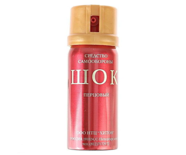 Газовый (перцовый) баллончик Шок, 65 мл является хорошим средством при самообороне от хулиганов либо агрессивных собак. Изделие производится в С-Петербурге НТЦ «Хитон». Еще в 90-е годы 20-го века данное средство являлось лидером среди газовых баллончиков российских производителей.