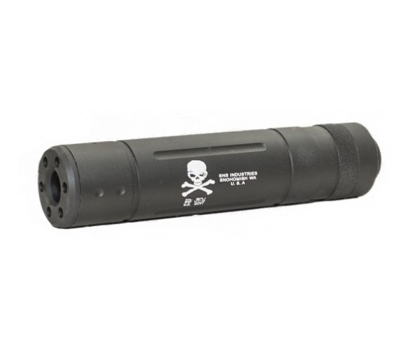 Представленная модель глушителя HY147F от компании Cyma (Китай) подходит для большинства моделей страйкбольного оружия. Образец выполнен в гладком корпусе из высокопрочного алюминиевого сплава, длина 145 мм, а внешний диаметр глушителя составляет 30 мм. Устанавливается на стандартную резьбу 14-.