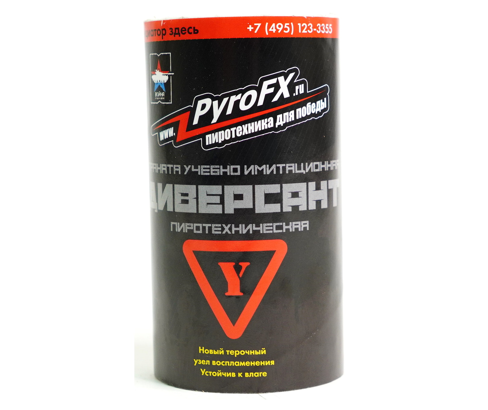 Учебно-имитационная граната для страйкбола и других военно-спортивных игр. Граната Диверсант имеет картонный корпус, в качестве условно поражающих элементов выступает горох. Для инициации необходимо прорвать мембрану в верхней части и дернуть за кольцо.