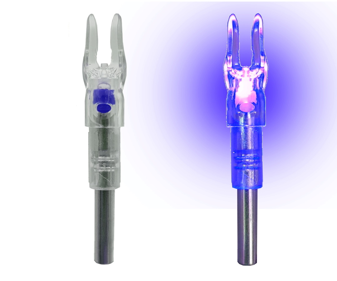 Хвостовики для лучных стрел с включающейся подсветкой синего спектра. Время работы в непрерывном режиме — 72 часа. Источник питания — встроенный аккумулятор. Источник света — диод. Свечение включается и выключается специальным переключателем сбоку хвостовика с помощью микро-отвертки, входящей в комплект. Также имеется режим автоматического включения с помощью кнопки расположенной в прорези хвостовика. Кнопка нажимается в момент выстрела из лука.