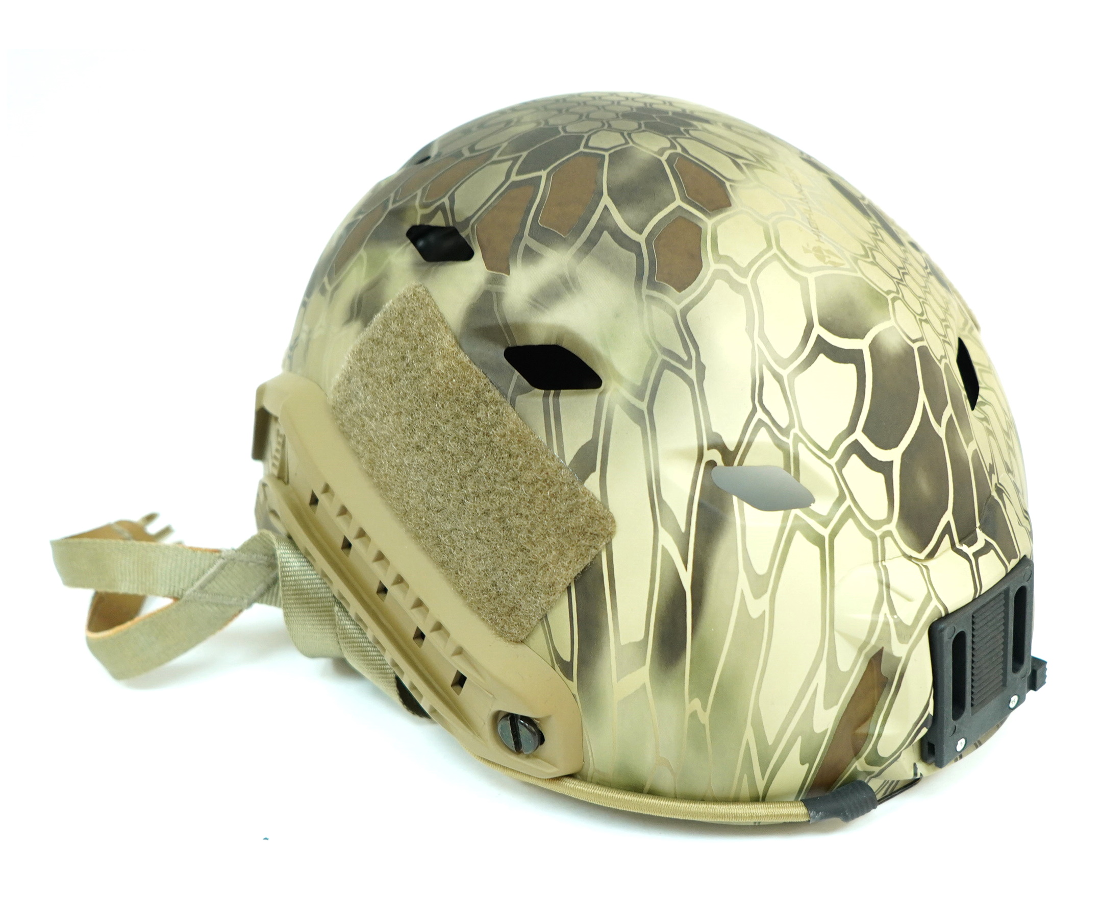 Прочная и удобная тактическая каска, предназначенная для игры в страйкбол. Шлем имеет расцветку Kryptek Nomad. На корпусе каски имеется крепление для ПНВ. Также, имеются тактические рельсы, велкро-панели и восемь вентиляционных отверстий. Данная каска защитит вашу голову от различных типов ударов при игре в страйкбол. Шлем легко зафиксировать с помощью регулируемых ремешков.