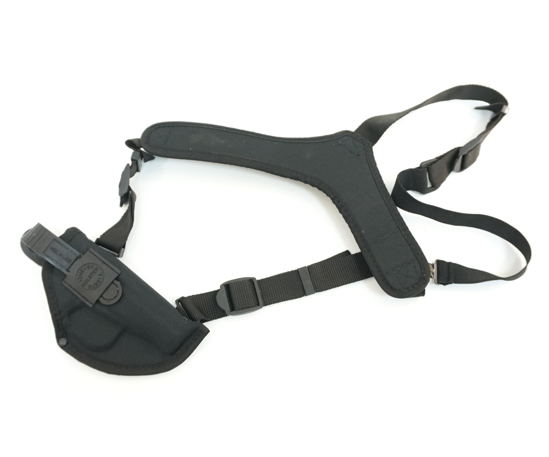 Кобура характеризуется плечевым способом ношения. С помощью двух ушек она крепится к регулируемой подвесной системе. Ремешок с кнопкой и точная ручная формовка прекрасно удерживают оружие. Металлический ускоритель помогает его быстро извлечь.