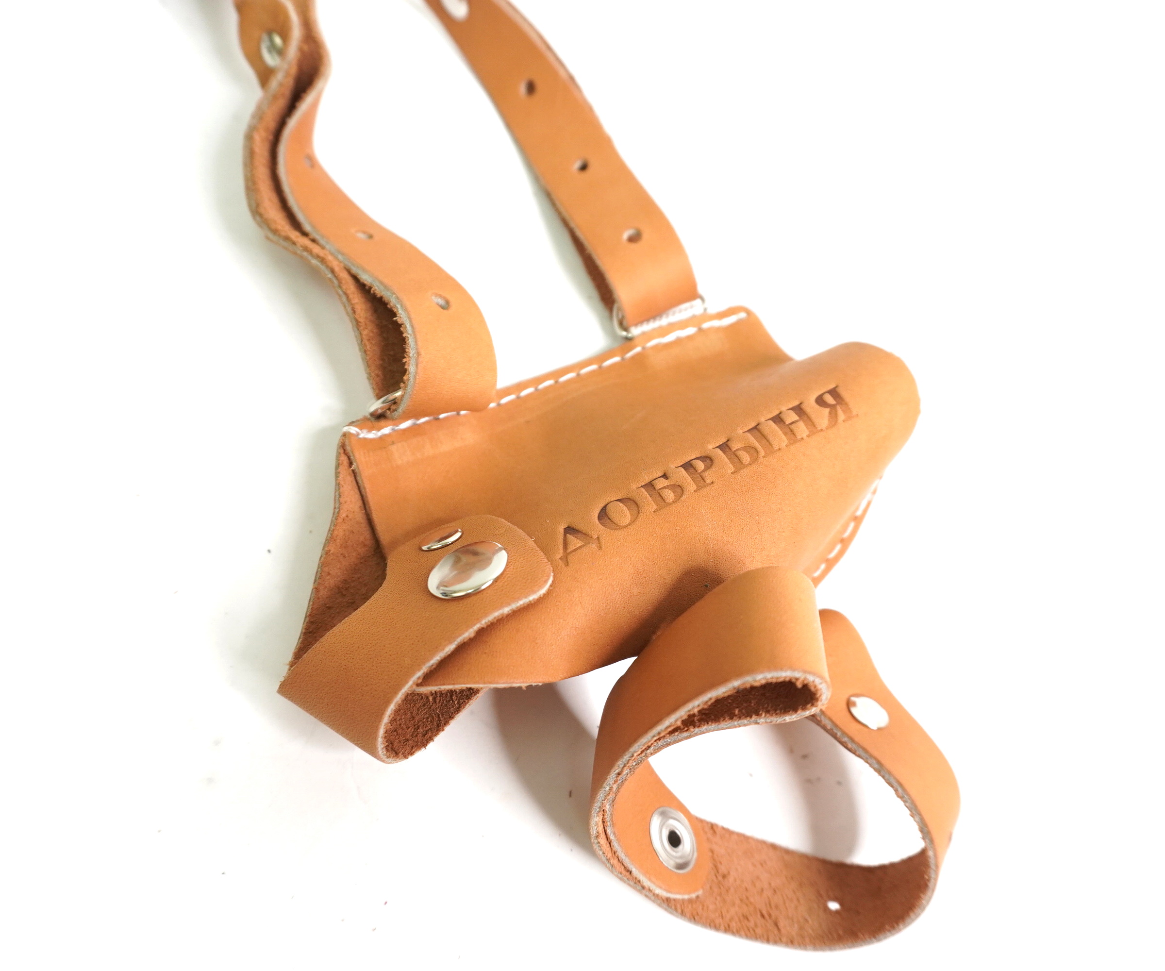 Данная оперативная кобура предназначена для ношения аэрозольного устройства (пистолета) «Добрыня». Изготовлена из натуральной кожи юфть.