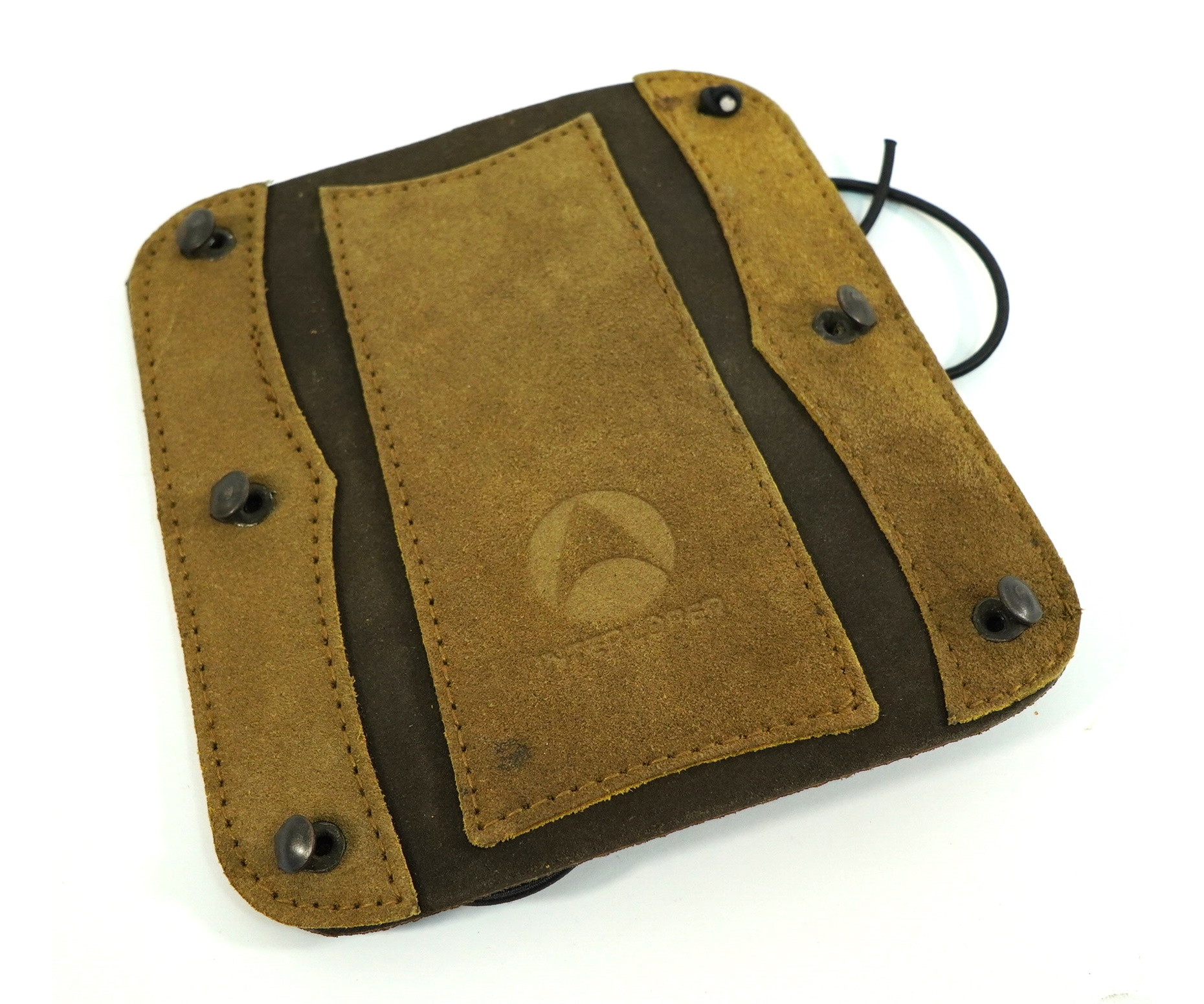 Материал изготовления — натуральная замша. Удобно фиксируется на предплечье лучника с помощью эластичной шнуровки. Защищает руку стрелка от соприкосновения с тетивой во время выстрела. Совмещает практичность и историческую эстетику.