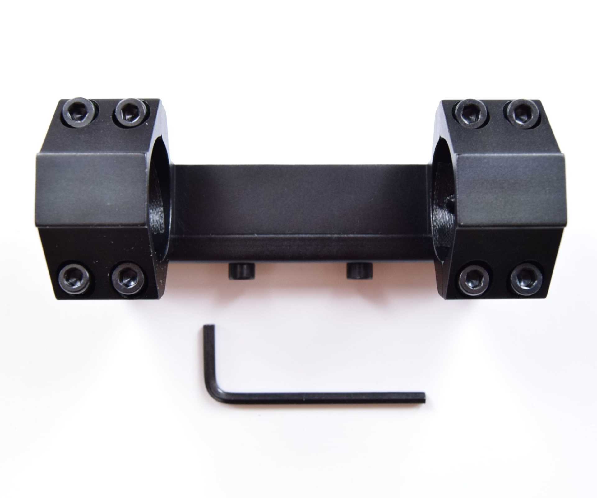 BH-MS07 – низкопрофильный монолитный кронштейн с кольцами, с высотой посадки 14 мм, пригодится для установки оптических и коллиматорных прицелов с размером трубки 25,4 мм и диаметром объектива до 53 мм, на планку «ласточкин хвост». Корпус моноблока, длиной 10 см выполнен из алюминиевого сплава, поверхность анодирована, устойчива к коррозии. Фиксируется на базе оружия 4-мя стальными винтами.