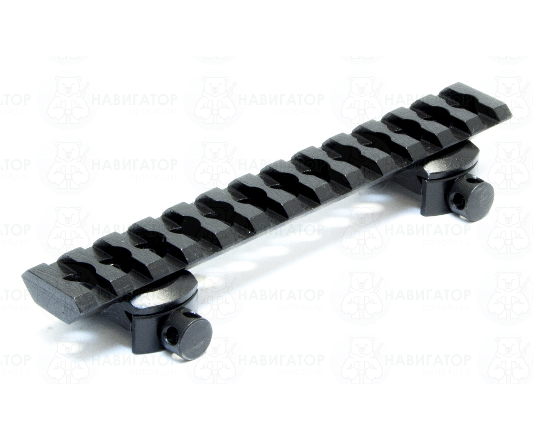 База имеет возможность перестановки стоек с шагом 10 мм для установки на оружие и регулировку выноса базы по оси оружия.