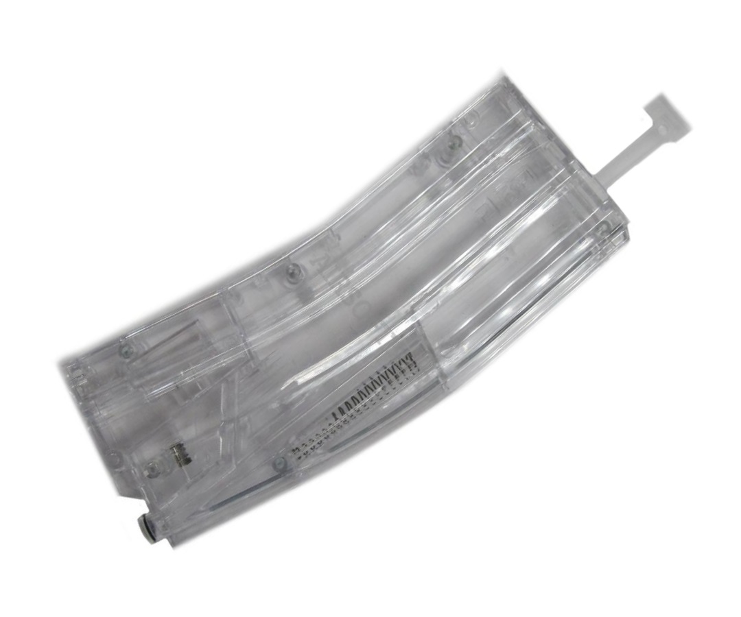 Лоадер G-08-100 увеличенного объема выполнен в виде магазина М4. Корпус выполнен из прочного пластика. Данный лоадер подходит не только для зарядки обычных механических магазинов, но и газовых и пистолетных. В комплект входят две насадки для зарядки магазинов. Одна из насадок закреплена непосредственно на корпусе лоадера, вторая расположена в специальном отсеке внутри лоадера. Такая система поможет вам не потерять насадки.