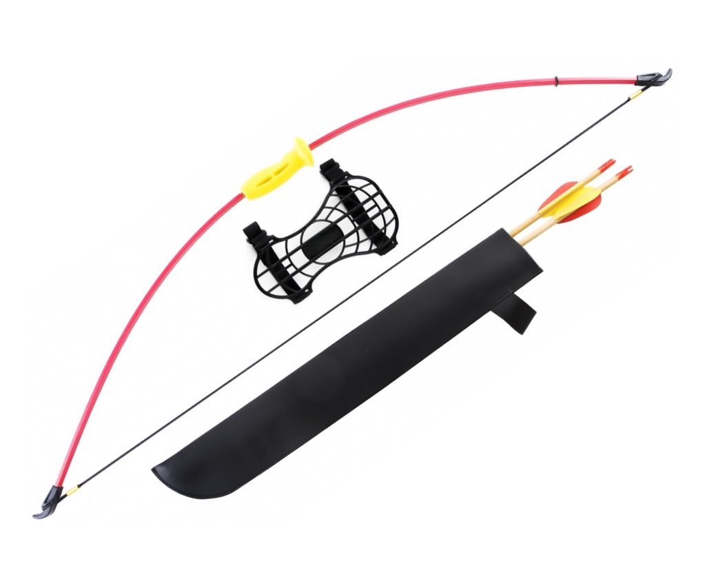 В комплект включено все необходимое для безопасной стрельбы – пластиковая защитная крага, две стрелы из дерева, напальчник, колчан для стрел, а также бумажная мишень для тренировок.