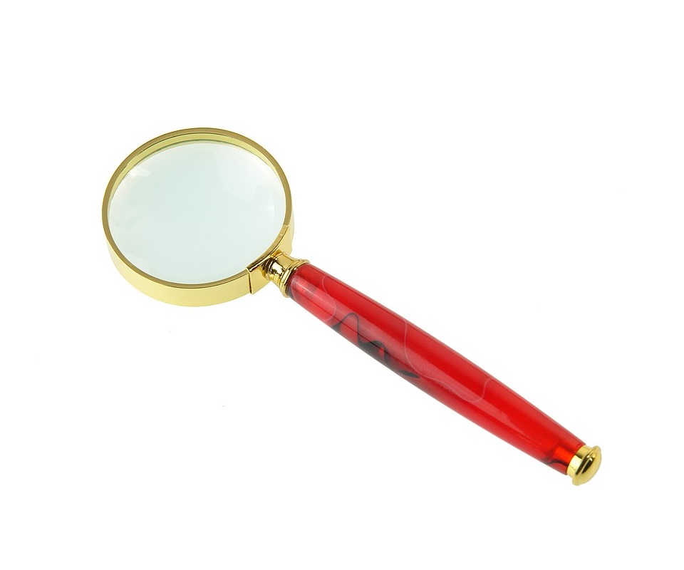 Оправа линзы изготовлена из металла с покрытием «под золото», а ручка из декоративного пластика «под яшму». Длина ручки 102 мм. Классика в современном исполнении. Линза изготовлена из оптического стекла — она не поцарапается при небрежном обращении и позволяет получать яркое изображение без искажений по краям поля зрения.