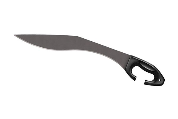 Мачете Kopis 97KPM18S от Cold Steel создан в оригинальном дизайне, видом напоминая конструкции старинных мечей, распространенных в свое время у древних греков и латинян. Популярность этого изделия, в первую очередь, обусловлена его особой формой, в которой центр тяжести клинка вынесен вперёд, что представляется наиболее оптимальным вариантом при резки или рубке. Сохраненное же острие позволяет мачете производить колющие движения.