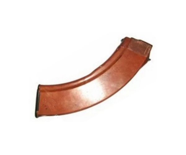 Дополнительный магазин для ручного пулемета Калашникова РПК калибра 7,62х39 мм на 40 патронов, армейский оригинал времен СССР. Также подходит для автоматов Калашникова данного калибра и для макетов, охолощеных автоматов на его основе. Бакелитовый, коричневого цвета.