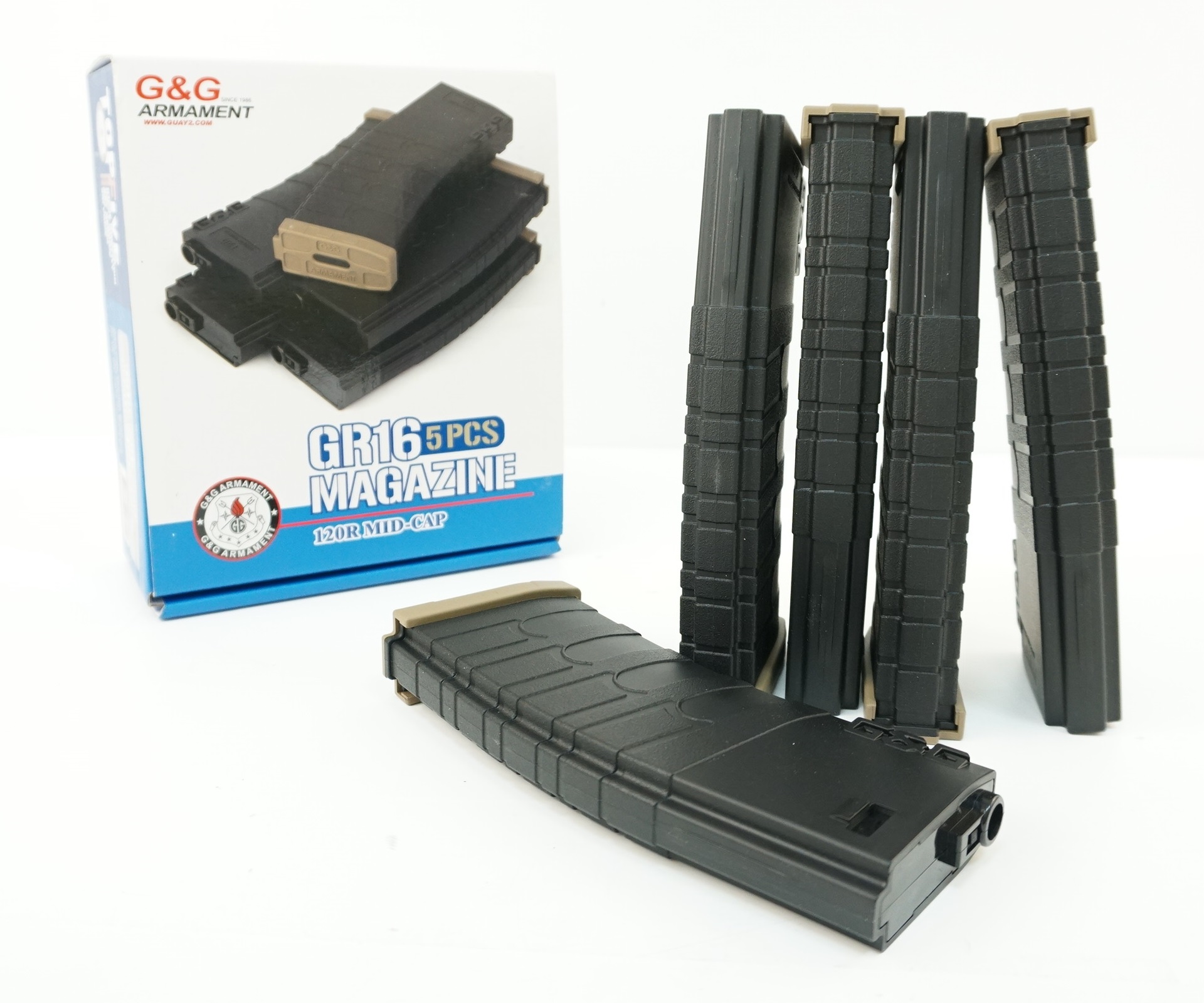 Магазин механический G&G для M4/M16 на 120 шаров, Black/Desert Tan, 5 штук (G-08-126)