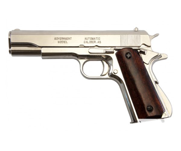 Главная ММГ, макеты, сувенирное оружие Denix (Испания) Макет пистолет Colt M1911A1 .45, хром, лакиров. дерево (США, 1911 г.) DE-6316