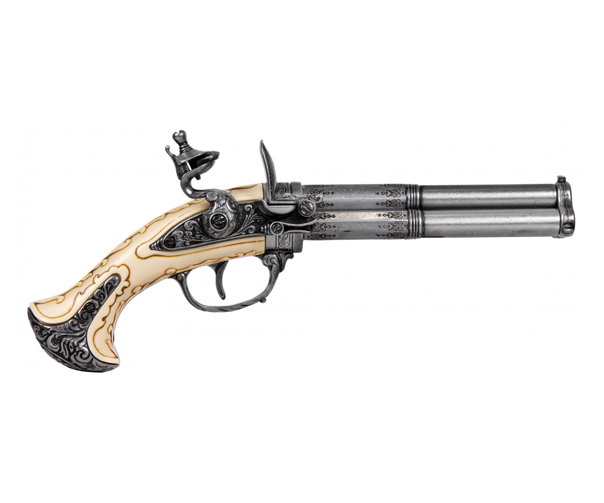 Макет пистолет кремневый трехдульный, под кость (Франция, XVIII век) DE-1309