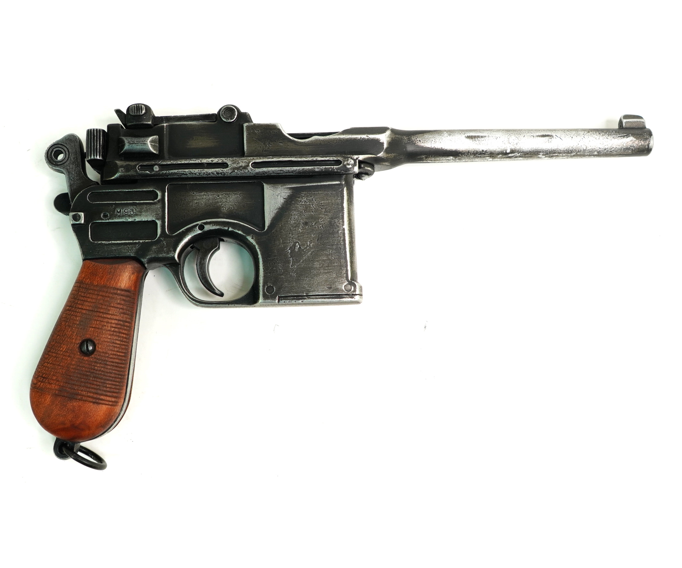 Макет пистолета Маузер, деревянная рукоятка – полноразмерная копия боевого оружия, которое оставило заметный след в военной истории 20 века. Пистолет был запатентован Паулем Маузером в 1896 году, однако нет единого мнения о том, кто же в действительности является автором разработки: сам Маузер или оружейники братья Федерле.