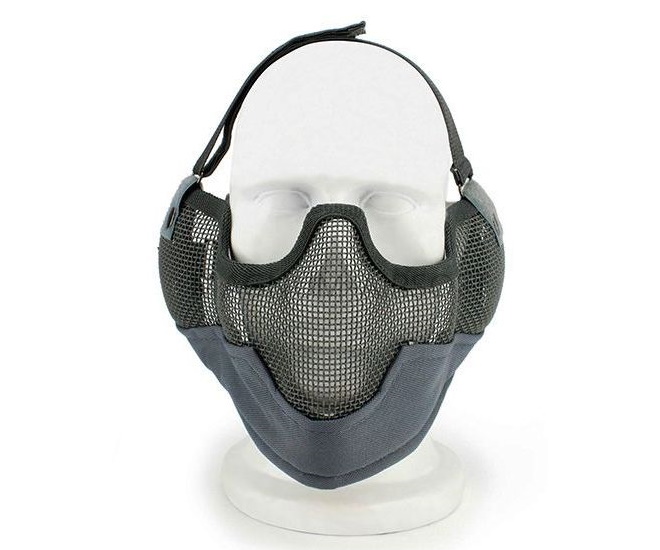 Облегчённая защитная маска изготовлена из жестяной сетки, что позволяет надежно защищать от травм нижнюю часть лица, нос и уши.