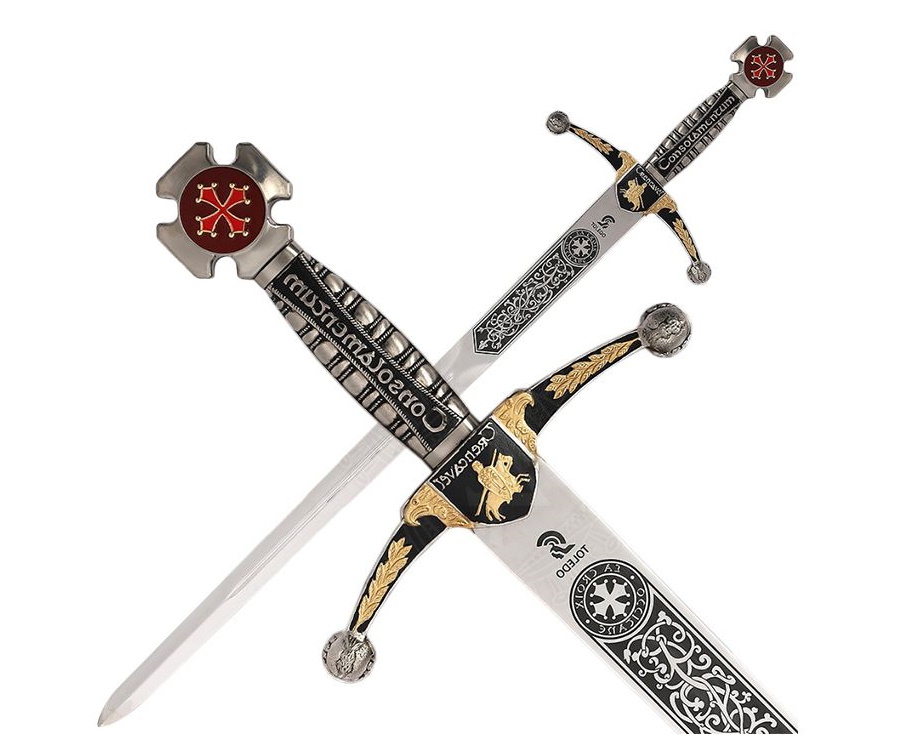 Меч имеет изысканную отделку с надписью на рукояти «Consolamentum». Что значит Консоламентум? — это обряд посвящения (духовное крещение) в переводе означает «утешение».