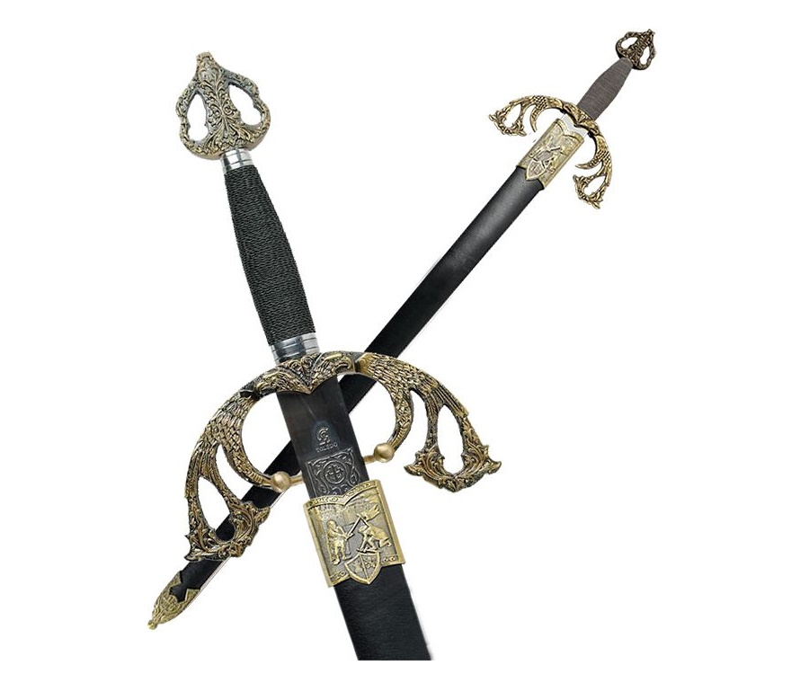 Недорогой рыцарский меч «Тизона» в латунной отделке (Tizona El Cid Sword) являлся личным оружием Эль Сида Кампеадора (Родриго Диаса де Вивара) — национального героя Испании XI века. Высокая степень детализации и гравировка на лезвии.