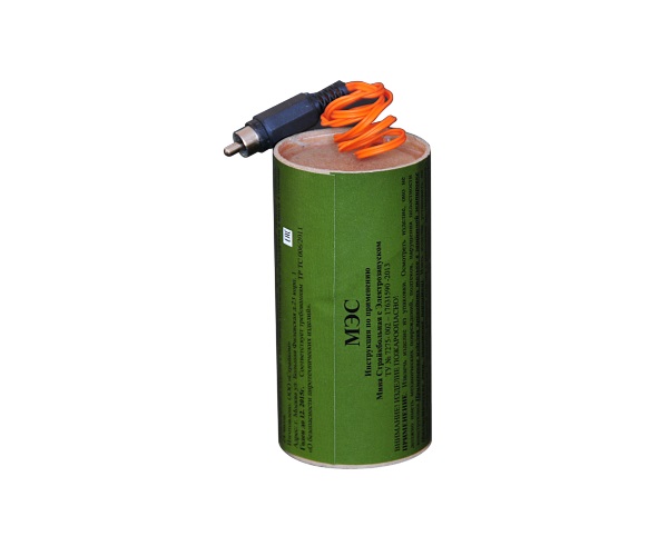 Мина страйкбольная МЭС представляет собой картонный цилиндр зеленого цвета с тонким токопроводящим проводом от пиротехнического электровоспламенителя. Вес наполнителя составляет 110 грамм, что в соотношении с мощным пироэлементом обеспечивает дистанцию поражения до 25 метров и зону сплошного поражения не менее 5 метров. В конструкции не используются металлические части и материалы при срабатывании образующие острые кромки.