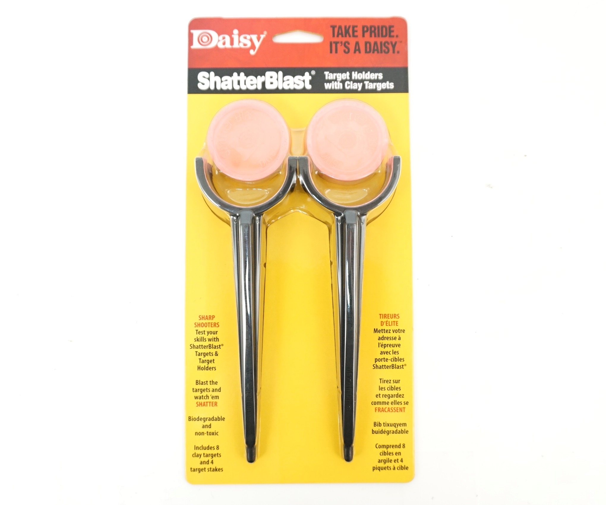 Мишени ShatterBlast имеют 2 дюйма (51 мм) в диаметре и 1/8 дюйма (3 мм) толщиной; разрушаются после попадания в цель. Комплект включает в себя 4 ударопрочные подставки, которые нужно воткнуть в землю и 8 целевых мишеней.