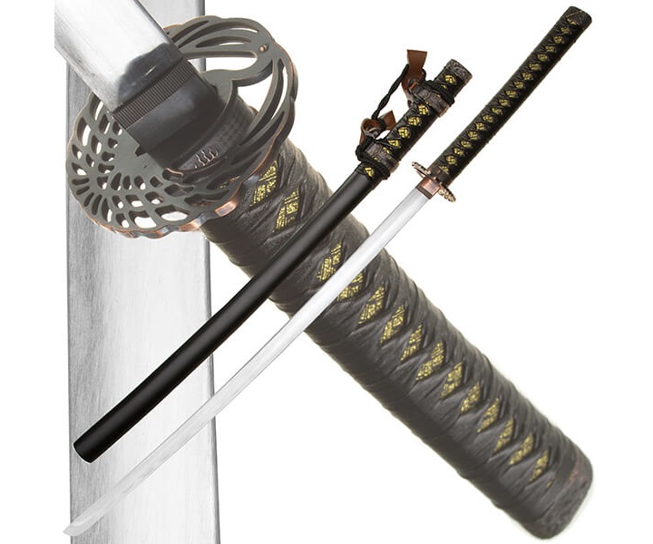 Тачи (или «тати») – это длинный японский меч, который носили не за матерчатым поясом кимоно, а на нём, подвешивая его в специальной перевязи. Именно для тачи была придумана оплётка на ножнах. Она была призвана защитить ножны тачи от повреждения металлическими доспехами. Это уже знакомая нам модель Tsuru, поставляемая отдельно от набора.
