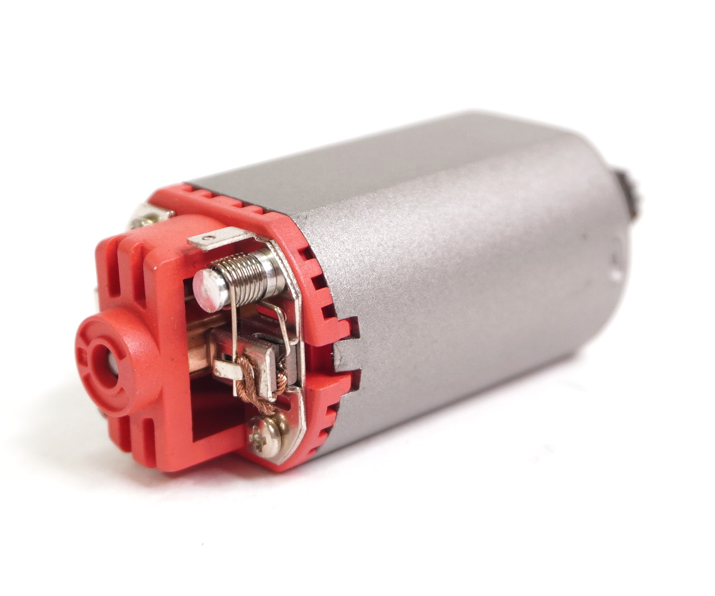 DJ0016 — стандартный мотор короткого типа (с короткой осью). Подходит для замены штатных моторов в моделях без тюнинга (пружины до 120-130 м/с). Обычно применяется в гирбоксах 3 версии (АК, G36, MP5K и др.). D-образная моторная шестерня.