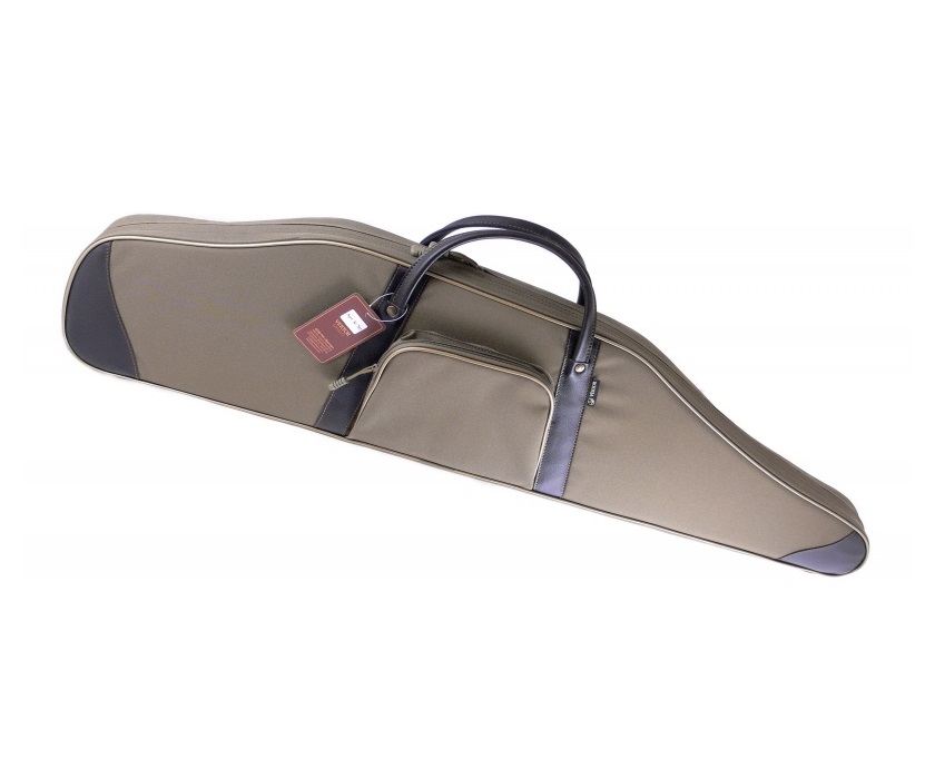 Чехол из синтетической ткани, рекомендован для хранения и переноски винтовки с прицелом. Материал использован плотный и износоустойчивый. Детали отделки из кожи: ручки для переноски и накладки на краях чехла. С одной стороны есть наружный карман для полезных мелочей на молнии с одним замком. С другой стороны находится регулируемый ремень, который позволяет переносить чехол не только за ручки в горизонтальном положении, но и на одном плече вертикально.