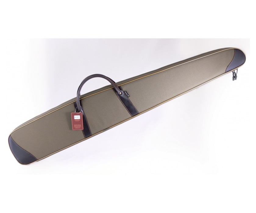 Чехол из синтетической ткани, рекомендован для хранения и транспортировки оружия. Материал использован плотный и износоустойчивый. Детали отделки из кожи: ручки для переноски и накладки на краях чехла. С одной стороны находится регулируемый ремень, который позволяет переносить чехол не только за ручки в горизонтальном положении, но и на одном плече вертикально. Чехол содержит поролон и подкладку из мягкого флока, которые защищают оружие от царапин и других механических повреждений. Закрывается основное отделение на молнию с двумя замками. Также на чехле имеется специальная петля, которую удобно использовать при хранении чехла, подвешивая его. Длина внешняя 137 см, внутренняя 134 см.