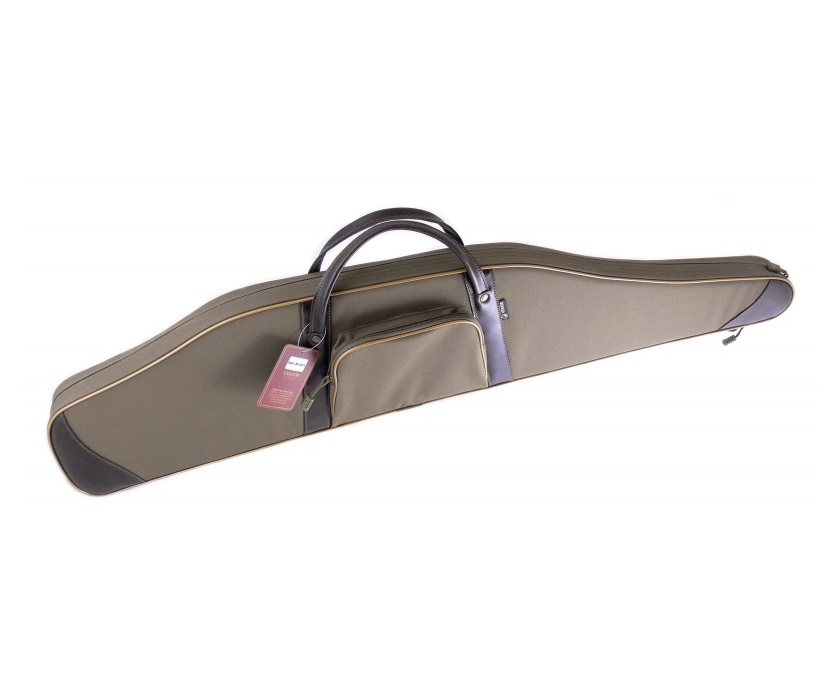 Чехол из синтетической ткани, рекомендован для хранения и переноски винтовки с прицелом. Материал использован плотный и износоустойчивый. Детали отделки из кожи: ручки для переноски и накладки на краях чехла. С одной стороны есть наружный карман для полезных мелочей на молнии с одним замком. С другой стороны находится регулируемый ремень, который позволяет переносить чехол не только за ручки в горизонтальном положении, но и на одном плече вертикально. Чехол содержит поролон и подкладку из мягкого флока, которые защищают оружие от царапин и других механических повреждений. Закрывается основное отделение на молнию с двумя замками. Также на чехле имеется специальная петля, которую удобно использовать при хранении чехла, подвешивая его. Длина внешняя 118 см, внутренняя 115 см.