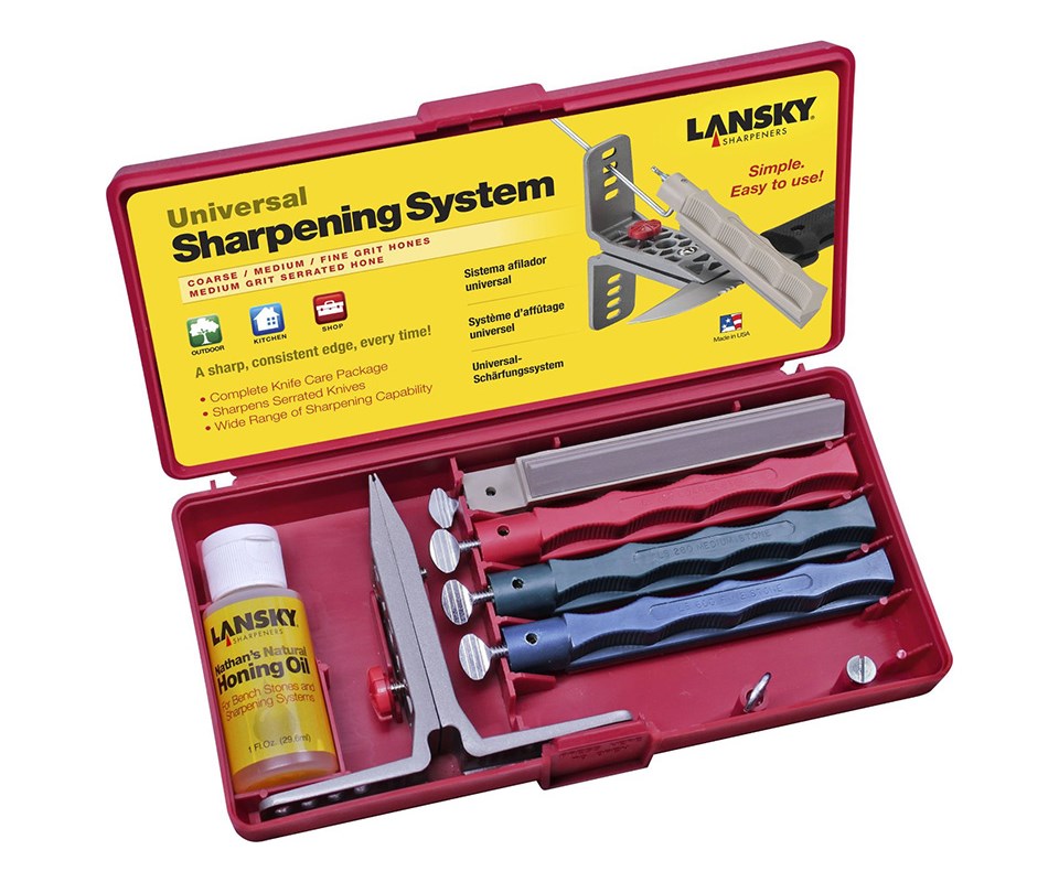 Набор для заточки Lansky LKUNV Universal предназначен для простой, безопасной и высококачественной заточки режущей кромки ножей и опасных бритв, с удержанием угла 30, 25, 20 и 17 градусов. Универсальный комплект с четырьмя абразивами, включающий в себя брусок для заточки серрейтора.