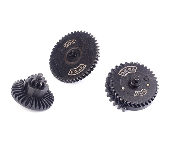 CL14015 – набор усиленных косозубых шестерней High Torque 100:300 от компании SHS, Китай. Изготовлены из стали. Пониженное передаточное число позволяет возводить более мощные пружины до SP170 включительно. Рекомендуется использовать только с втулками, использование с подшипниками может привести к их разрушению. Имеют низкий уровень шума.