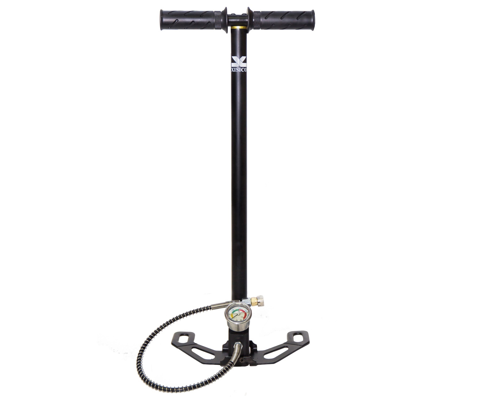 Весьма легкий насос Xisico к винтовкам PCP, весит всего 2,4 кг. Конструкция ножного упора, который легко и компактно складывается, накачивает резервуар до 300 атмосфер.