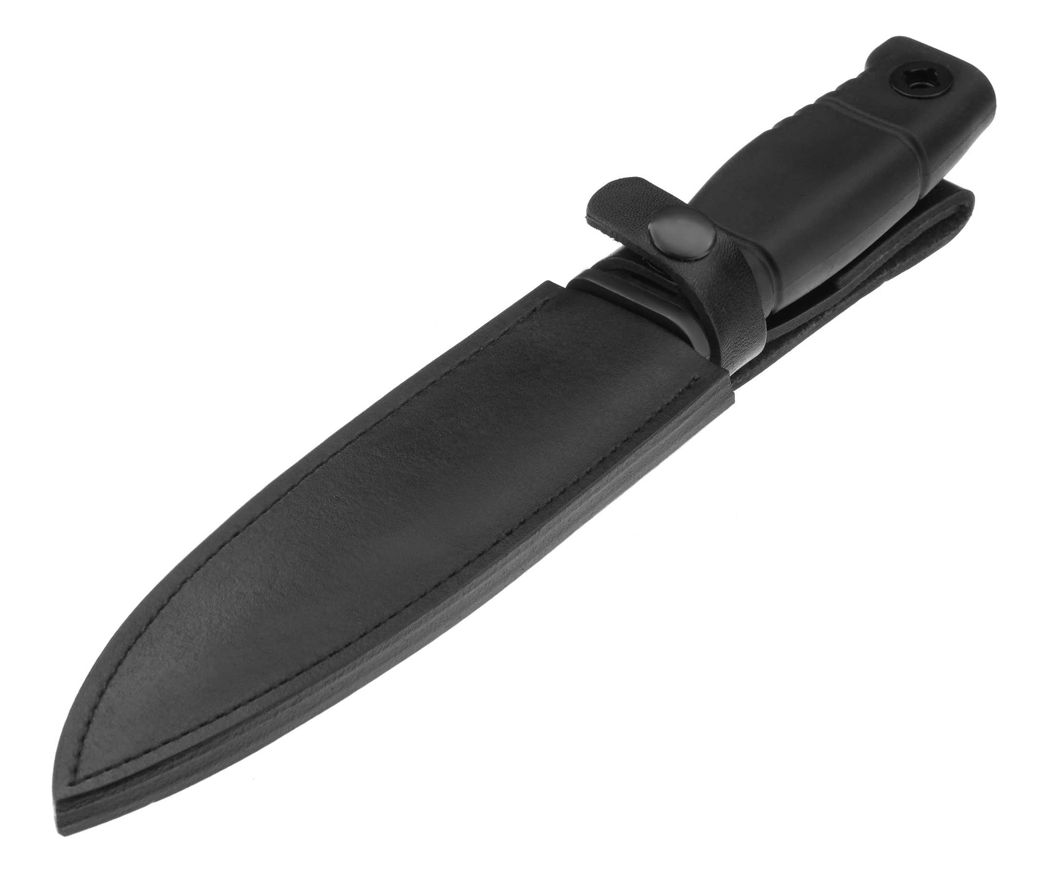 - Многофункциональные компактные ножны с функцией инструмента – выполнены из высококачественной кожи, оснащены приспособлением для перекусывания стальной проволоки и бруском с алмазным напылением для правки режущей кромки ножа.