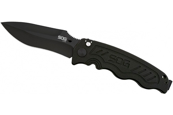 SOG Zoom Black Spring Assisted SG_ZM1012 является удобным и эргономичным ножом, который имеет уникальную фирменную систему открытия. Фиксирование клинка осуществляется с использованием эффективного замка Plunger Lock. Если требуется извлечь клинок, то делается это с использованием шпеньки. При закрытом положении блокировка клинка осуществляется вручную. Состоит клинок из японской стали Aus 8, которая отличается невысокой стоимостью, а также имеет оптимальное сочетание прочности, упругости, а при закалке износостойкость доведена до средней твердости. Параметры этой стали отличаются замечательными антикоррозионными свойствами. В сечении клинка используется шлиф Hollow Grind, а Titanium Nitride является типом покрытия ножа. Изготовление рукояти производится из анодированного сплава алюминия 6061 T-6 Aluminium. Нож имеет немного выгнутую спинку. Все эти параметры делают сложным скольжение пальцами при использовании ножа. Нож имеет классификацию Every Day Carry (EDC).