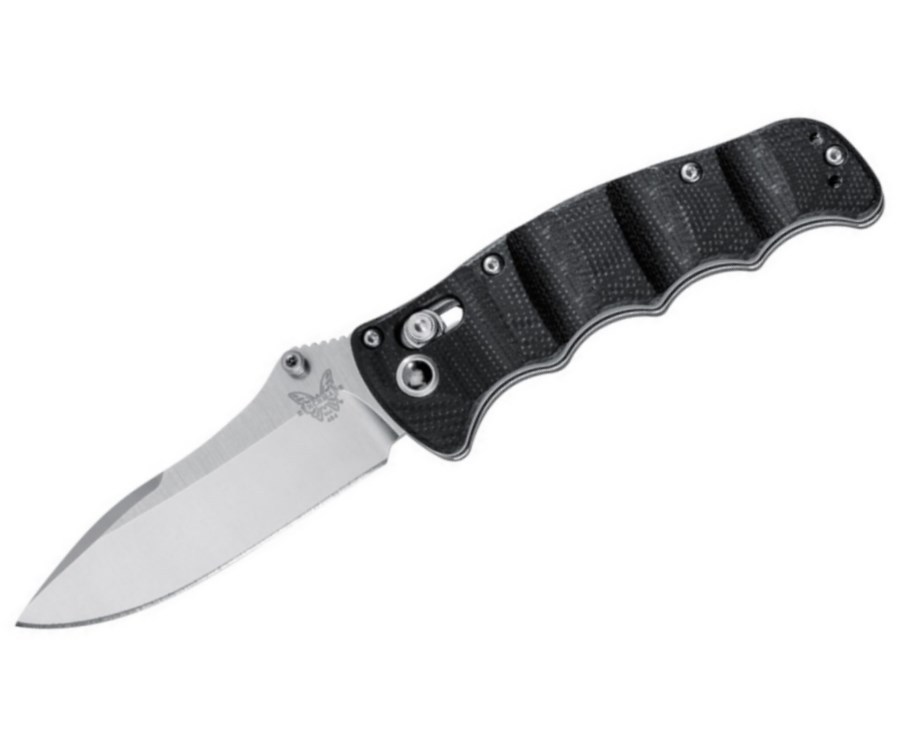 Этот нож практически не нуждается в заточке. Несмотря на небольшие размеры он способен прекрасно выполнять положенную работу. Все его составляющие выполнены из самых совершенных материалов. Модель имеет двустороннюю систему фиксации Benchmark AXIS, которая позволит применять его любой рукой. Это дизайнерский нож на каждый день.