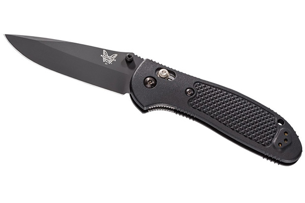 Складной нож от Benchmade 556 серии Mini Griptilian — это компактно изделие, которое славится замечательной резкой, имеет удобные для ношения габариты, ему свойственно иметь удачную конструкцию замка. Нож очень надежен, состоит из прочной марки стали, не имеет нареканий от владельцев. Дизайн ножа во многом остался прежним, но пропорциональность во всем стала меньше. Нож имеет очень хорошую заточку, способен переносить высокие нагрузки. По профилю клинок относят к Drop Point. Длина ножа составляет 17,2 см, на клинок в свою очередь отводится 7,4 см. Вес изделия составляет 72 грамма, при этом толщина обуха равна 2,5 мм. Для рукоятки используют такой материал, как Valox. Для надежного фиксирования лезвия предназначен Axis Lock замок. Режущая кромка лезвия — plain. Нож очень удобен для ношения на поясе, а также ремне, в этом помогает специальная клипса. Твердость стали 154CM равна 58-60 HRC единицам. Для страховочной корды или ремня используется отверстие в рукояти, получившее название Lanyard Hole. По своему внешнему виду ножик очень сильно напоминает 551 Грип. Формой клинка является Дроп-поинт. Для изготовления рукояти ножа применяются стальные лайнеры 420 стали, пластик GTX и насечки. В длину рукоятка занимает 10 см, она очень комфортно ложится на ладони. Для лучшего хвата и защиты от скольжения используются насечки. По классификации нож входит в EDX группу.